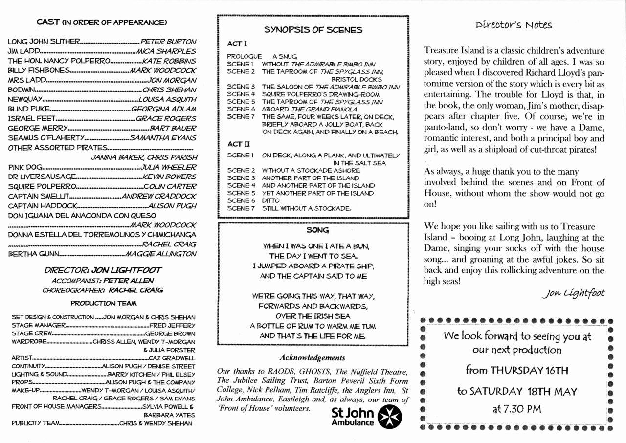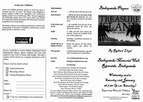 2013 Treasure Island – the panto 2013 Treasure Island – the panto poster Treasure Island – the panto By Richard LloydDirected by: Jon LightfootProduction Dates: 23rd – 26th January 2013 2013 Treasure Island2013 Treasure Island2013 Treasure Island2013 Treasure Island 2013 Treasure Island Daily Echo review