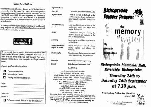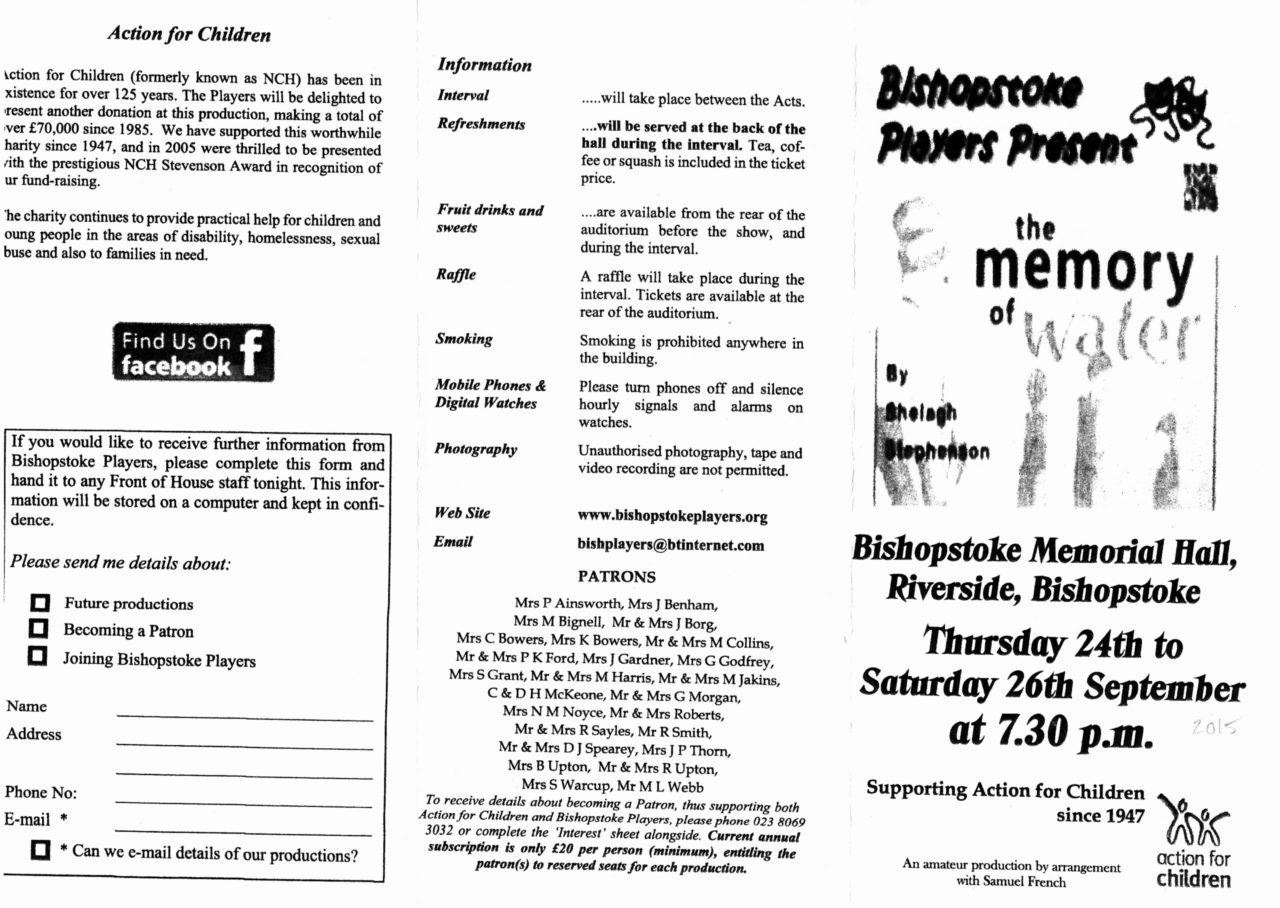 2015 The Memory of Water 2015 The Memory of Water poster The Memory of Water by Shelagh StephensonDirected by: Louisa AsquithProduction Dates: 24th-26th September 2015 2015 The Memory of Water programme2015 The Memory of Water programme 2015 The Memory of Water2015 The Memory of Water2015 The Memory of Water2015 The Memory of Water2015 The Memory of Water2015 The Memory of Water2015 The Memory of Water2015 The Memory of Water2015 The Memory of Water2015 The Memory of Water